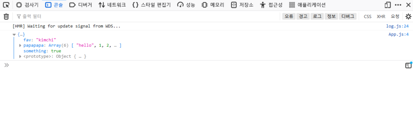 다시 리액트 앱 화면(브라우저)은 아무 변화 없다.
