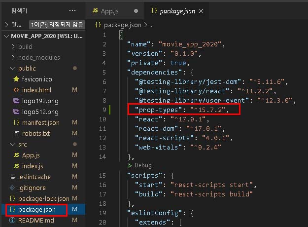 "prop-types": 부분이 보이면 잘 설치 된것.