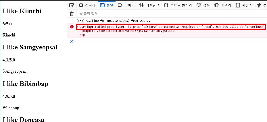 Food.propTypes = {...}를 추가한다.