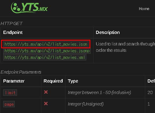 | endpoint | YTS API | 노마드 코더 영화 API |