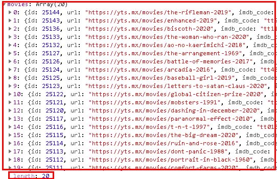 movies 변수에는 배열이 들어있고 객체가 20개 있다.
