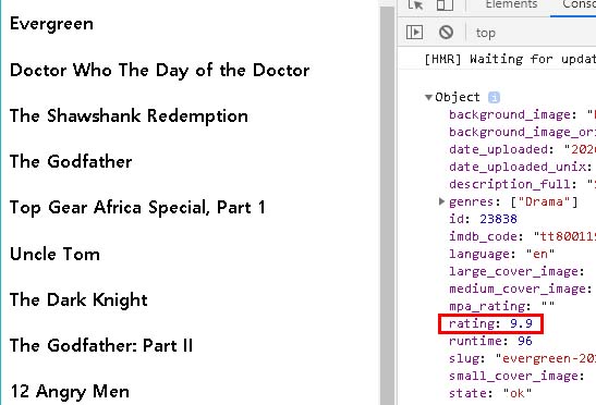 앱을 실행해서 영화 제목과 console 탭에서 평점 순으로 나오는지 확인하자.