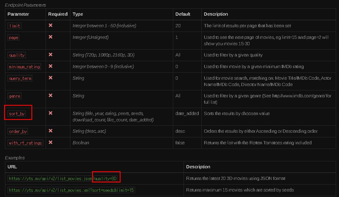 Examples에는 quality가 3D인 영화만 불러오는 URL이다. quality=3D