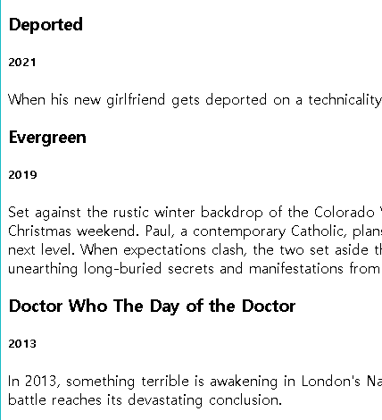 그 안에 title, year, summary를 목적에 맞는 엘리먼트로 감싼다.