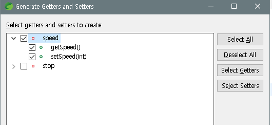getter를 만들거나 setter 혹은 둘다 체크하면 둘 다 만들어진다.