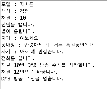 dmbCellPhone.receiveVoice("안녕하세요! 저는 홍길동인데요");
