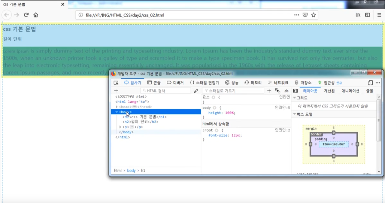 그러나 body에 100%를 주더라도 보여지는 크기는 같다.