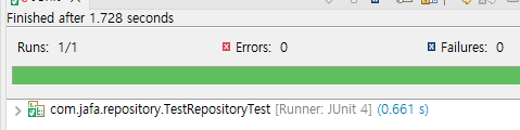 - com.jafa.repository패키지 TestRepositoryTest JUnit4 생성